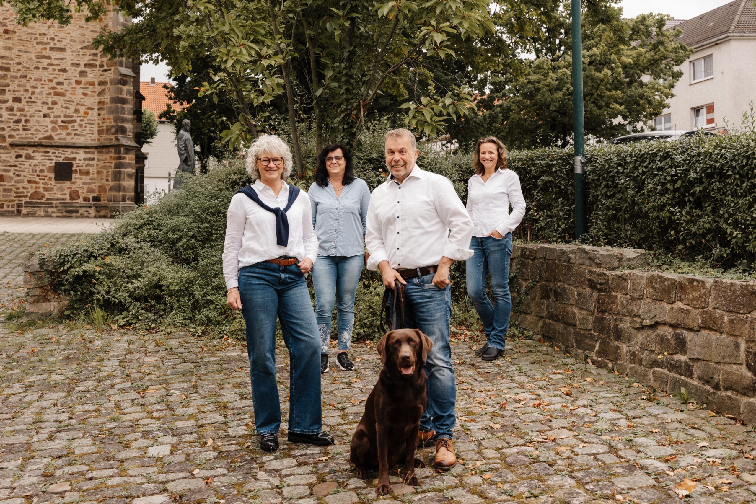 Zusammen als Team stehen wir für zuverlässige Beratung, hochwertige Lösungen und persönlichen Service. Unterstützt werden wir von Labrador Emil, der das Controlling übernimmt und für gute Laune sorgt.
